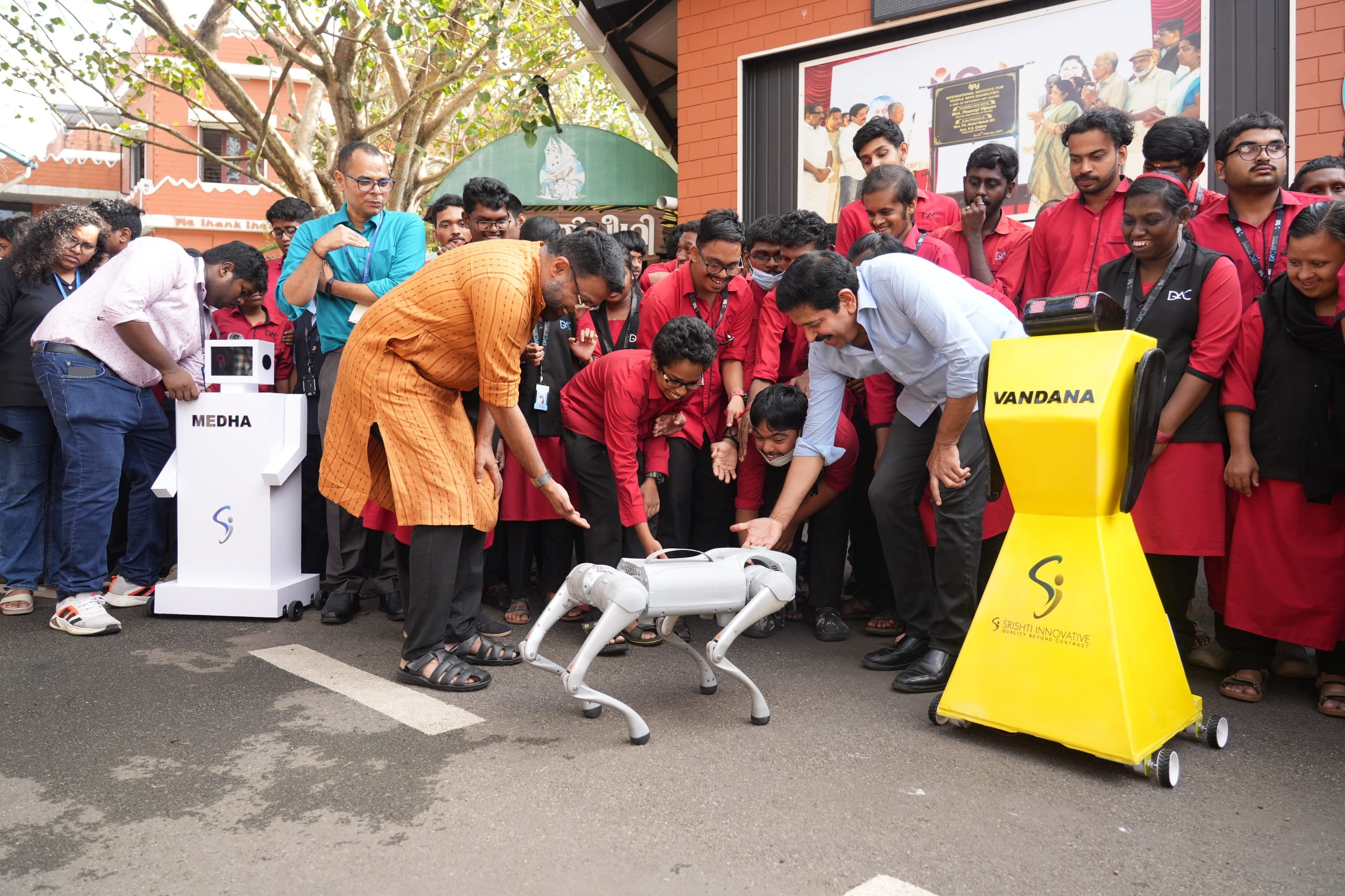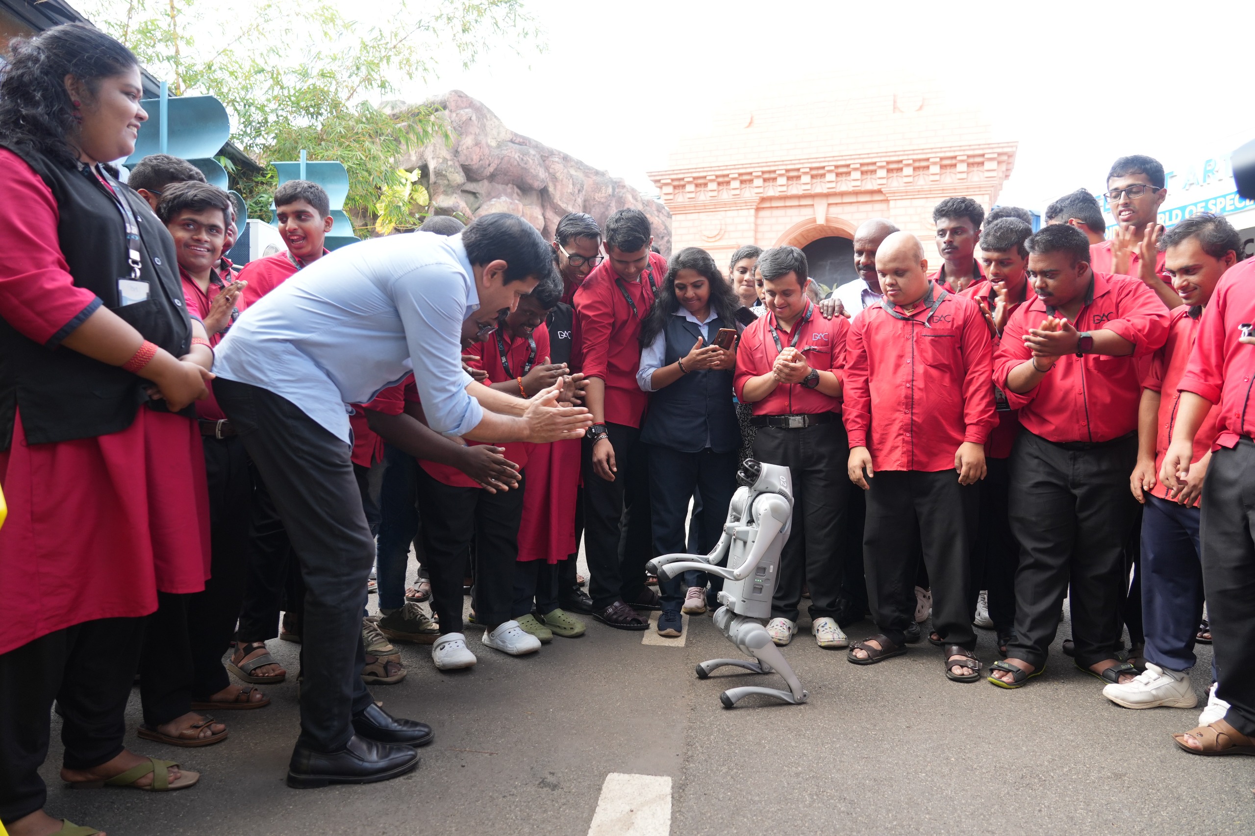Robots named RoboDog, Vandana, and Medha made a lively entry into the centre - jumping, running, narrating stories, shaking hands with children, presenting roses to dignitaries, and even dancing - creating an atmosphere of joy and wonder among the differently-abled participants.